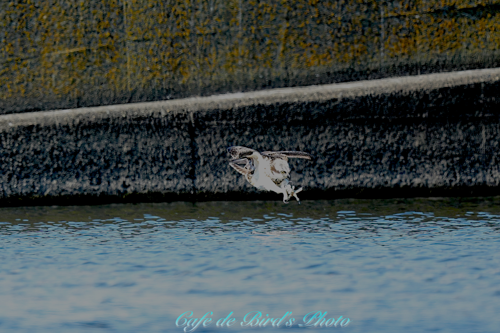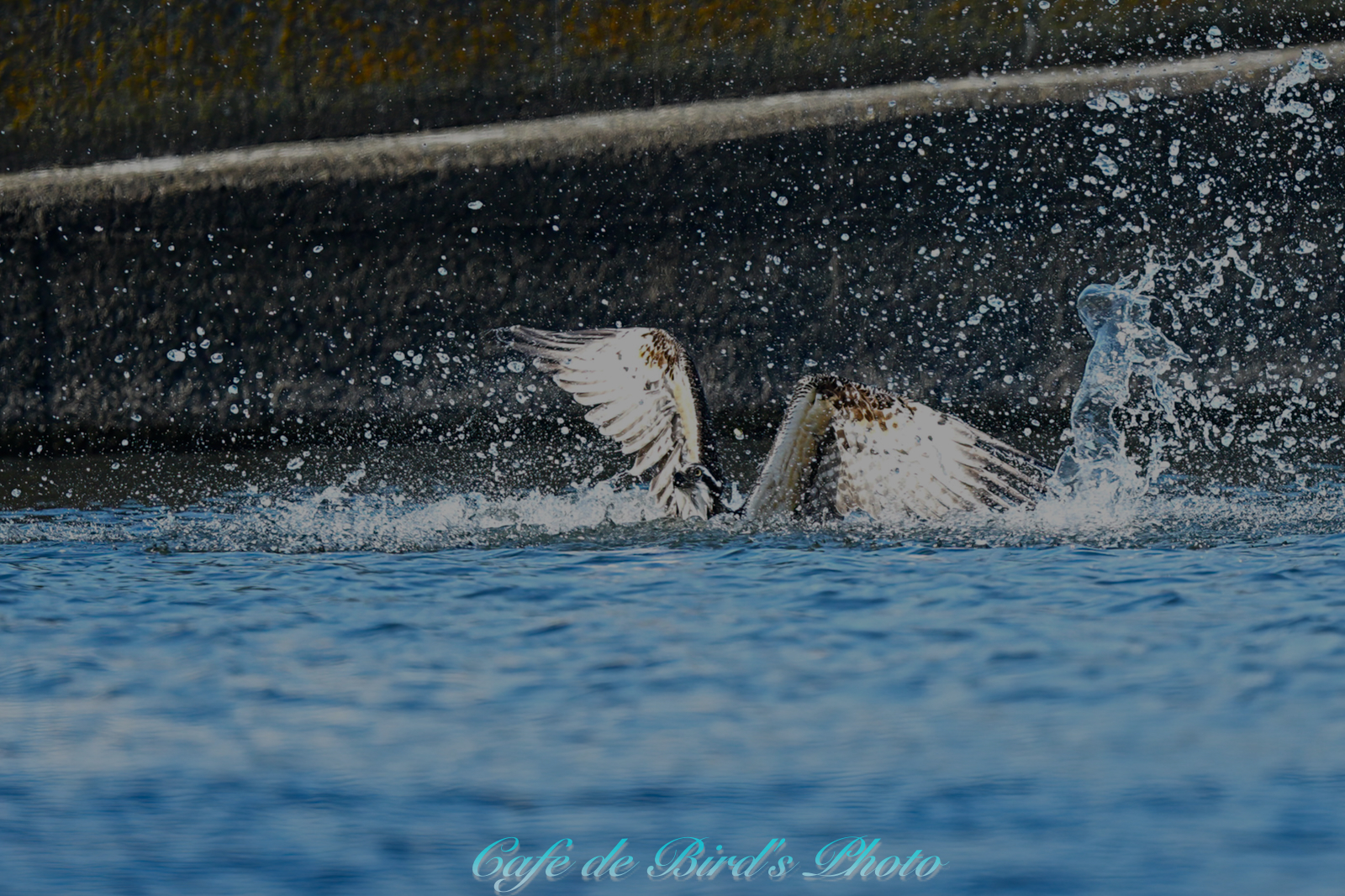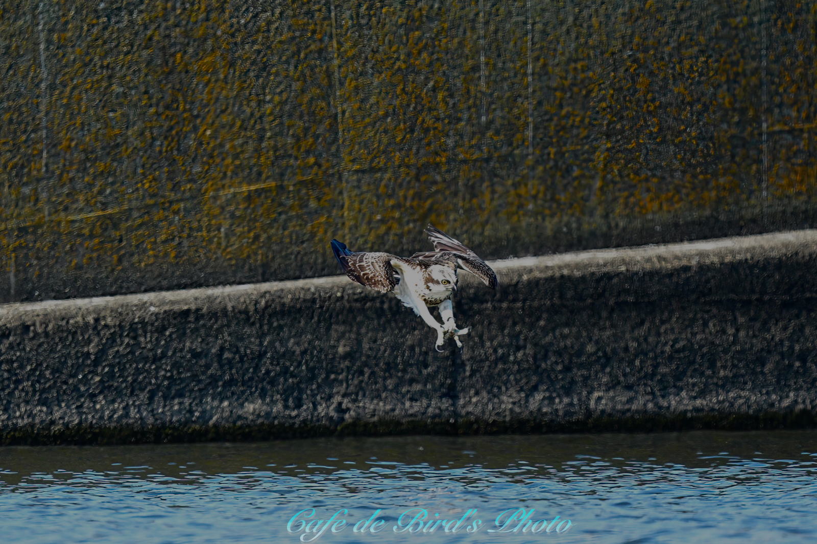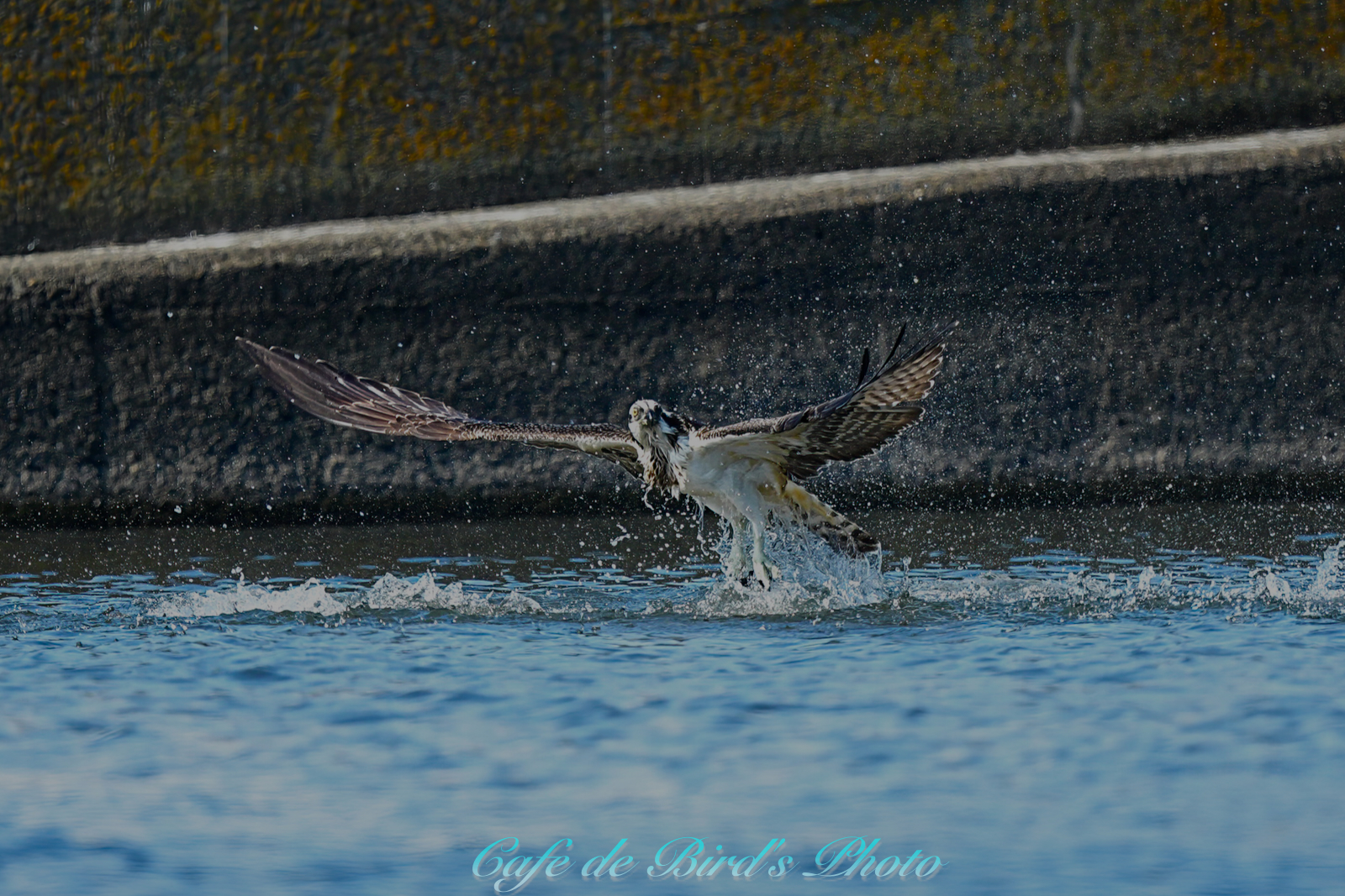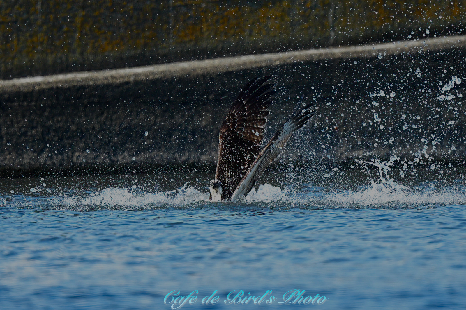 今日は魚獲りしたんですね、良かったですね。やっぱりオコナイの良い人はミサゴも応援してくれるんですね。(◎_◎;)言われるようにコンクリートが邪魔でしたね。でも写せたのですから贅沢は言えませんね。私は3日間お魚無しです。(^^;