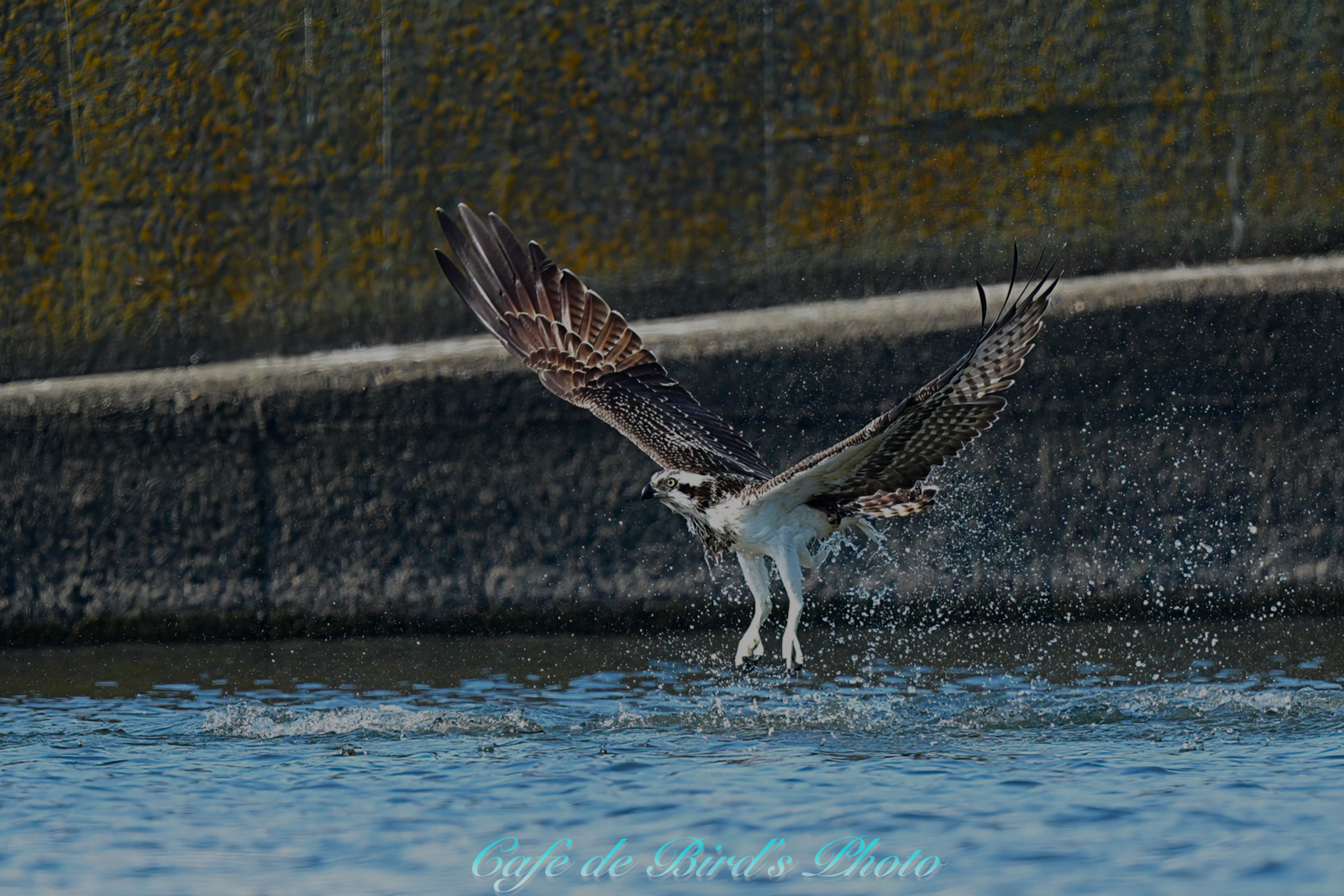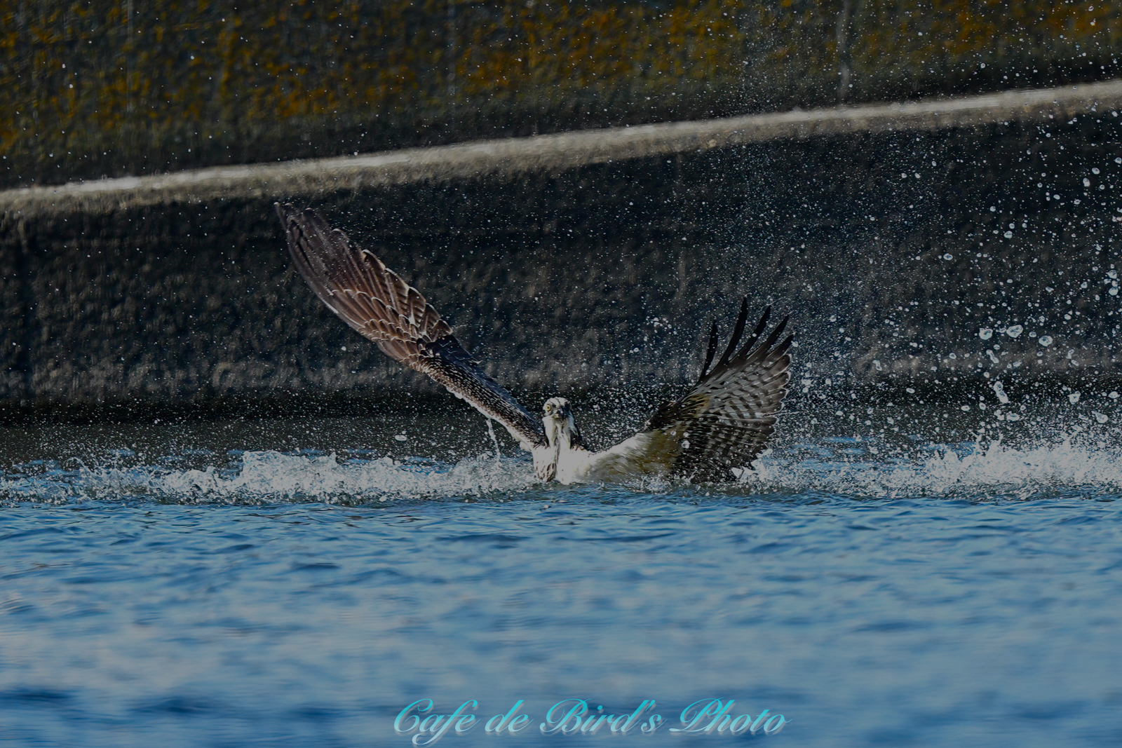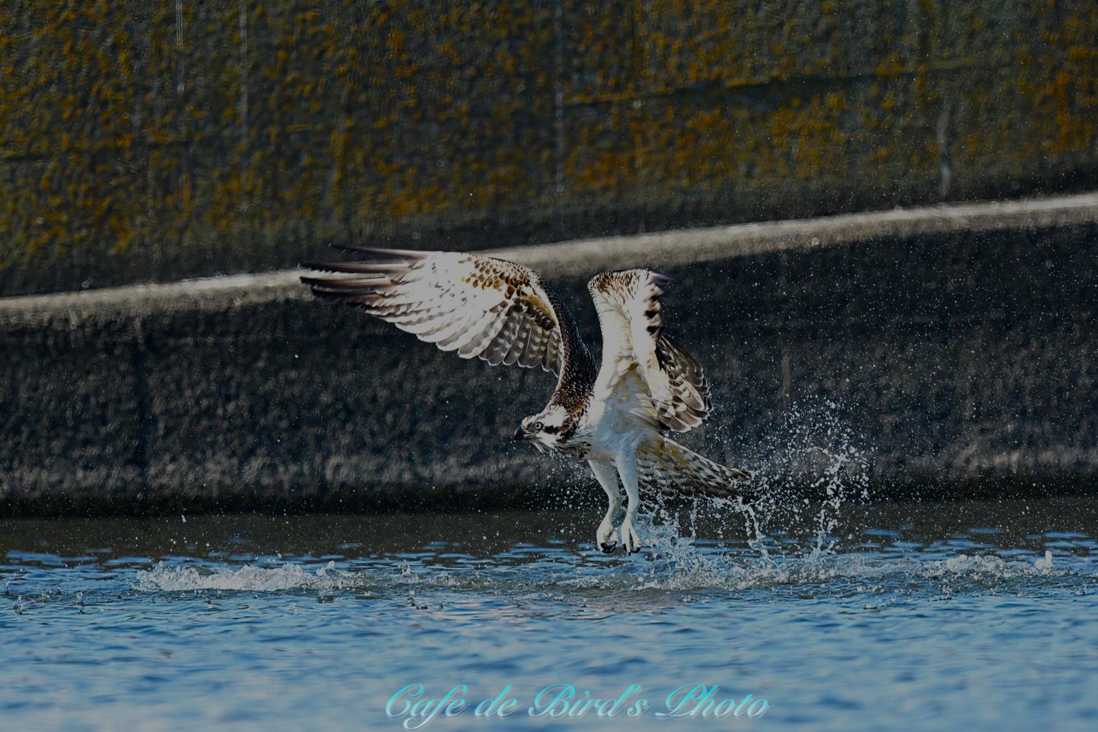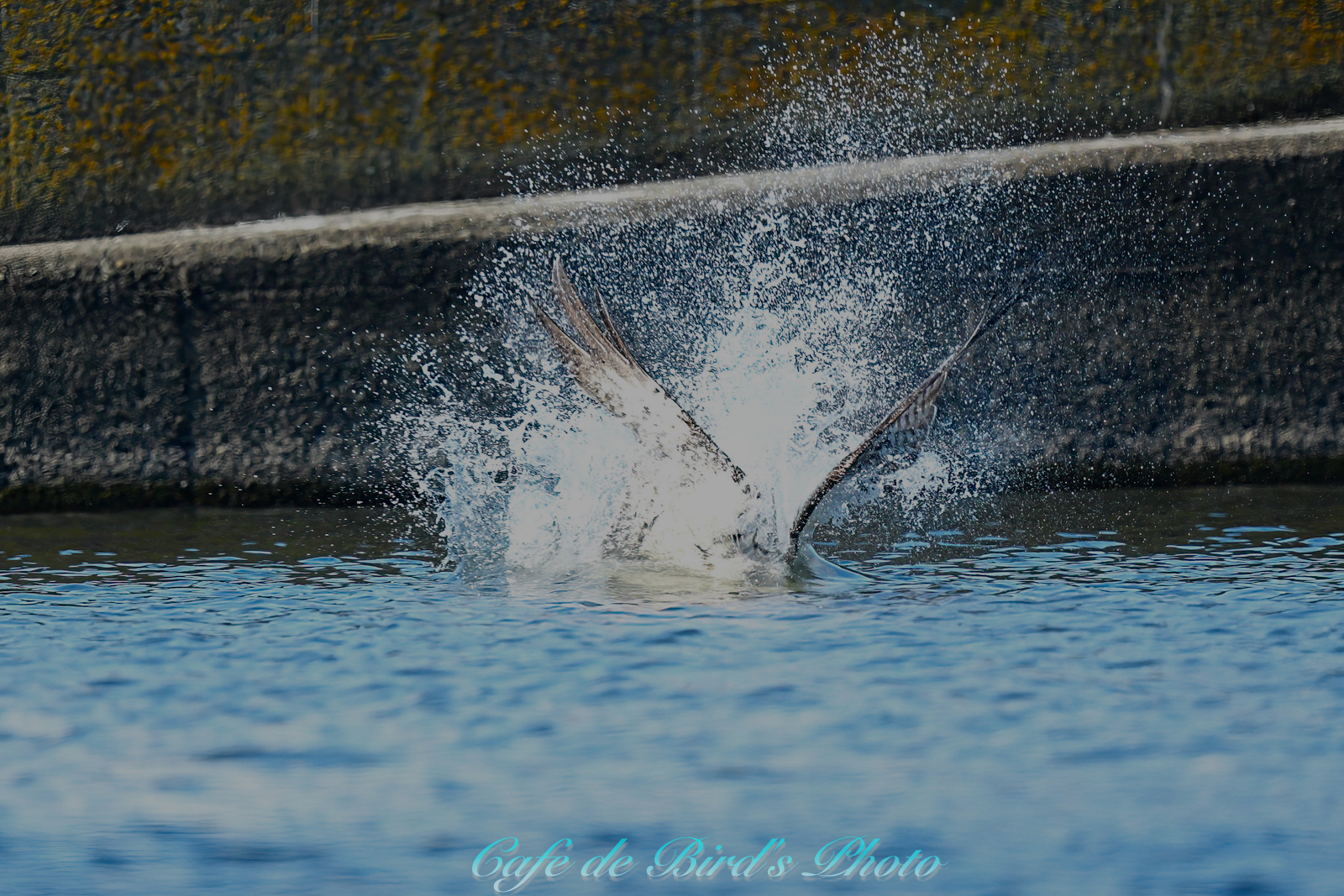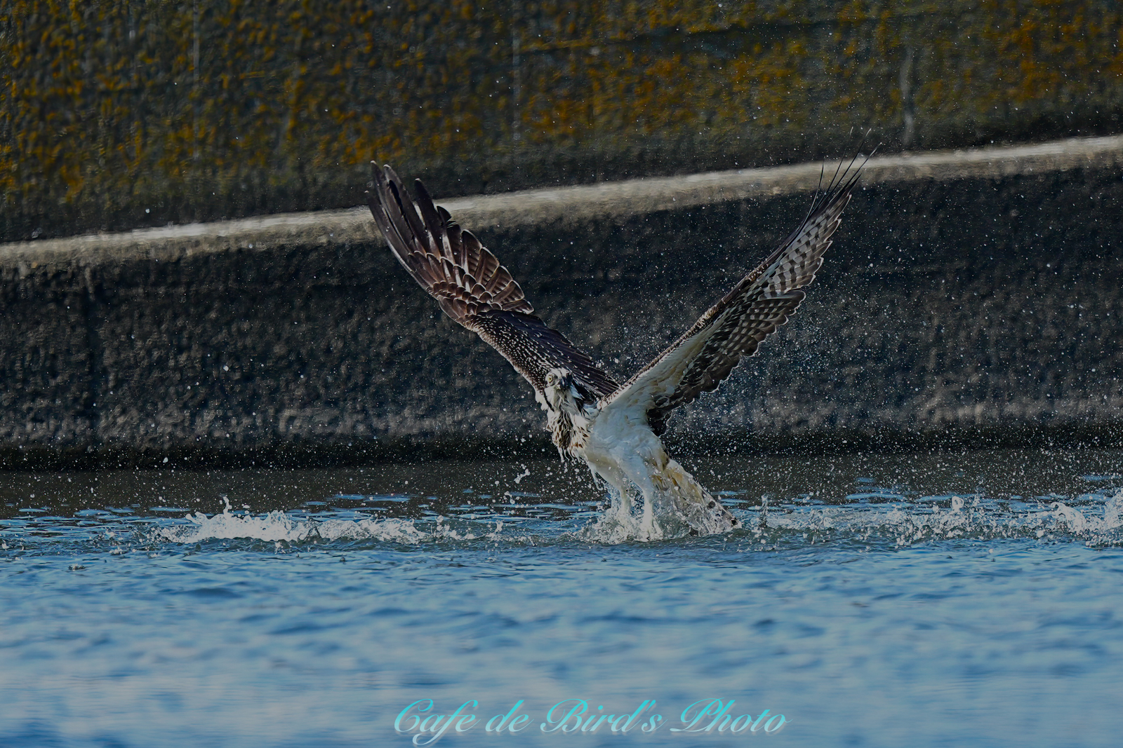 今日は魚獲りしたんですね、良かったですね。やっぱりオコナイの良い人はミサゴも応援してくれるんですね。(◎_◎;)言われるようにコンクリートが邪魔でしたね。でも写せたのですから贅沢は言えませんね。私は3日間お魚無しです。(^^;