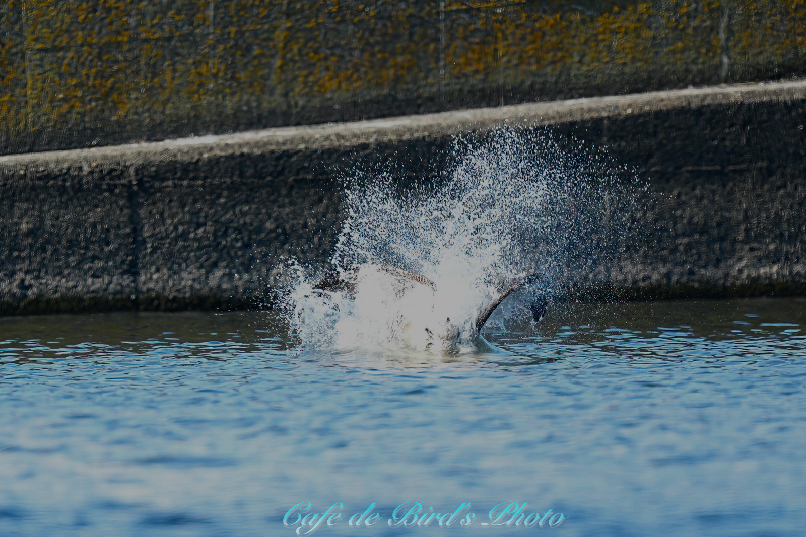 きょうのミサゴは飛び込み場所が悪かったですね、背景がコンクリートでダメダメでした、不思議にあの場所と・・・堤防の向こう側で全然見えませんでした。日によって