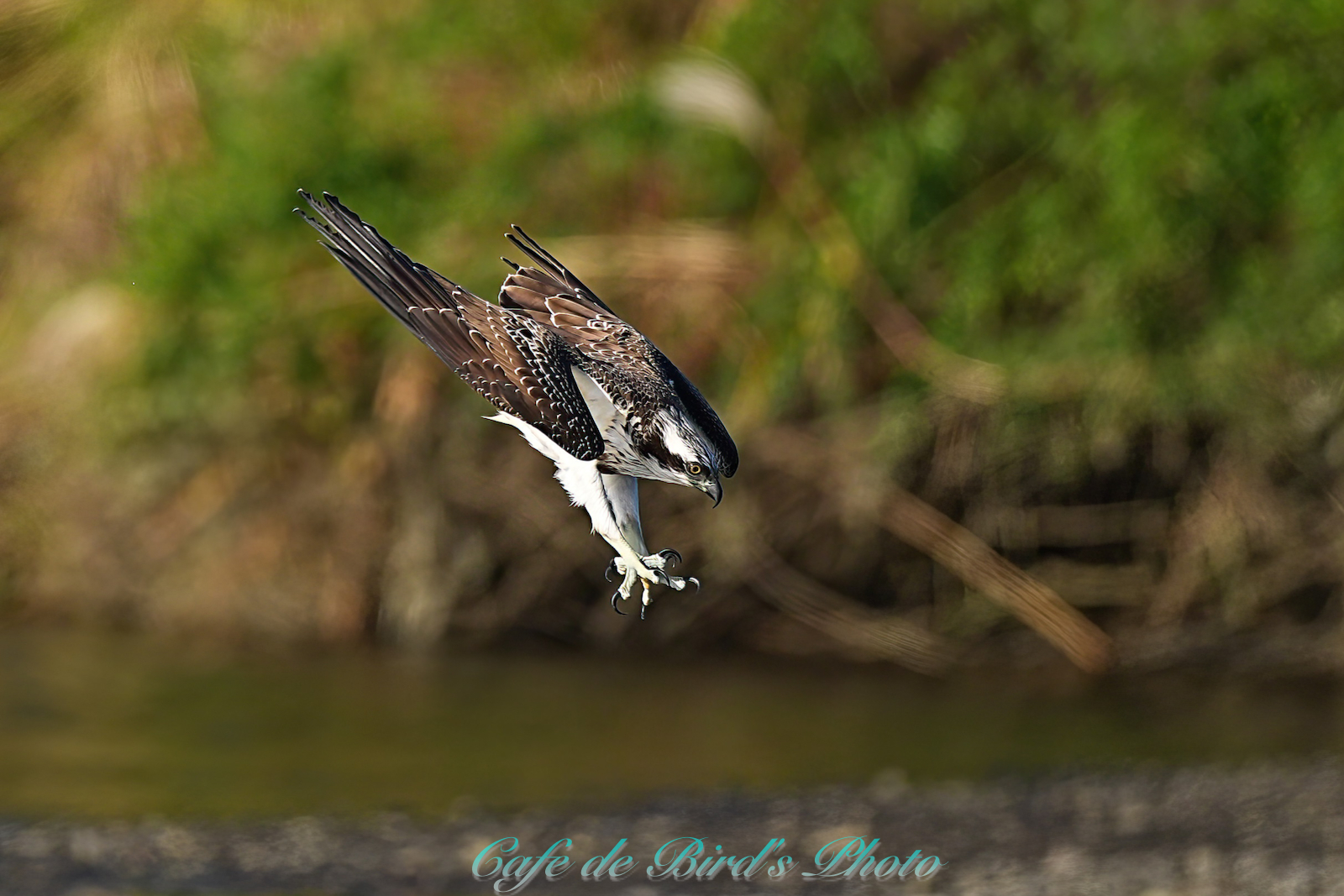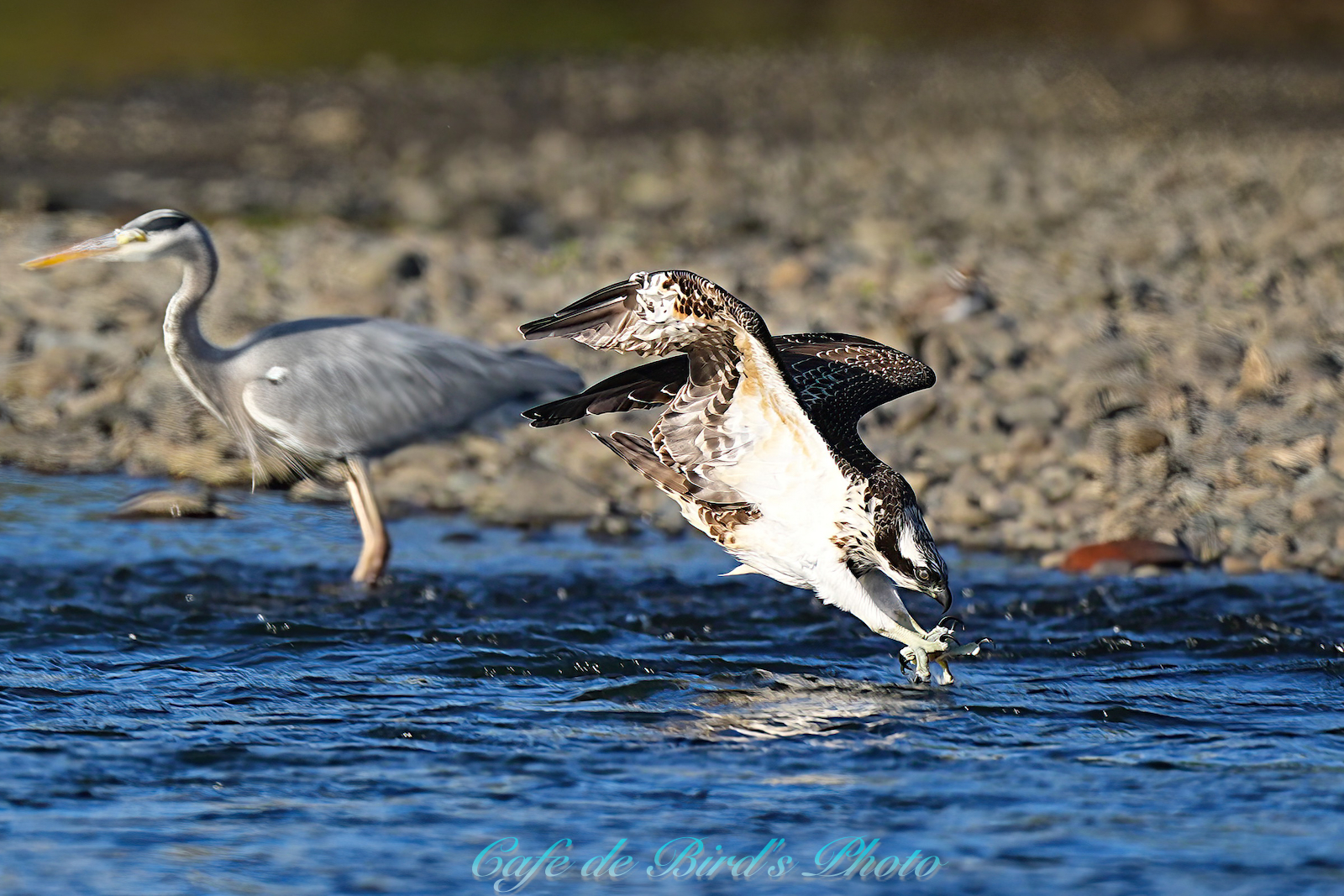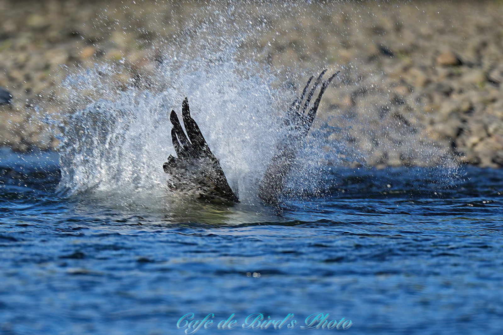 今日のミサゴは正面の産卵場には一度も飛び込みませんでした。少し下流にに2回程飛び込みました。正面の産卵場にはもう鮎は居ないのでしょうか、下に落ちて行ったのか