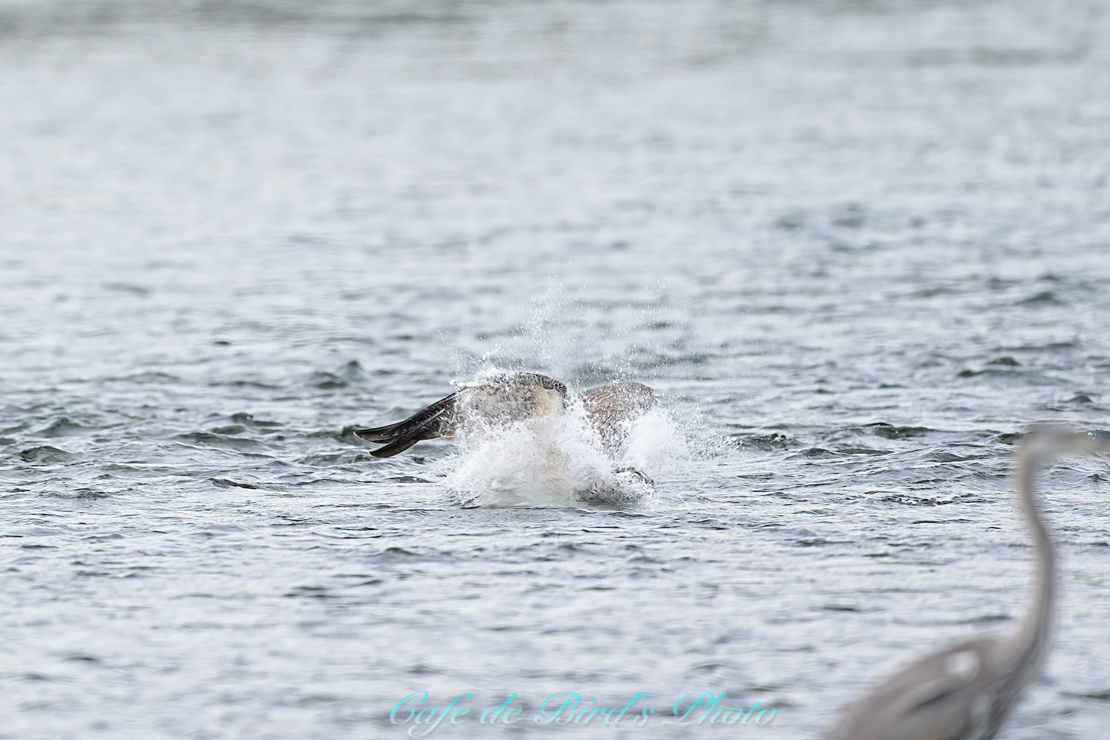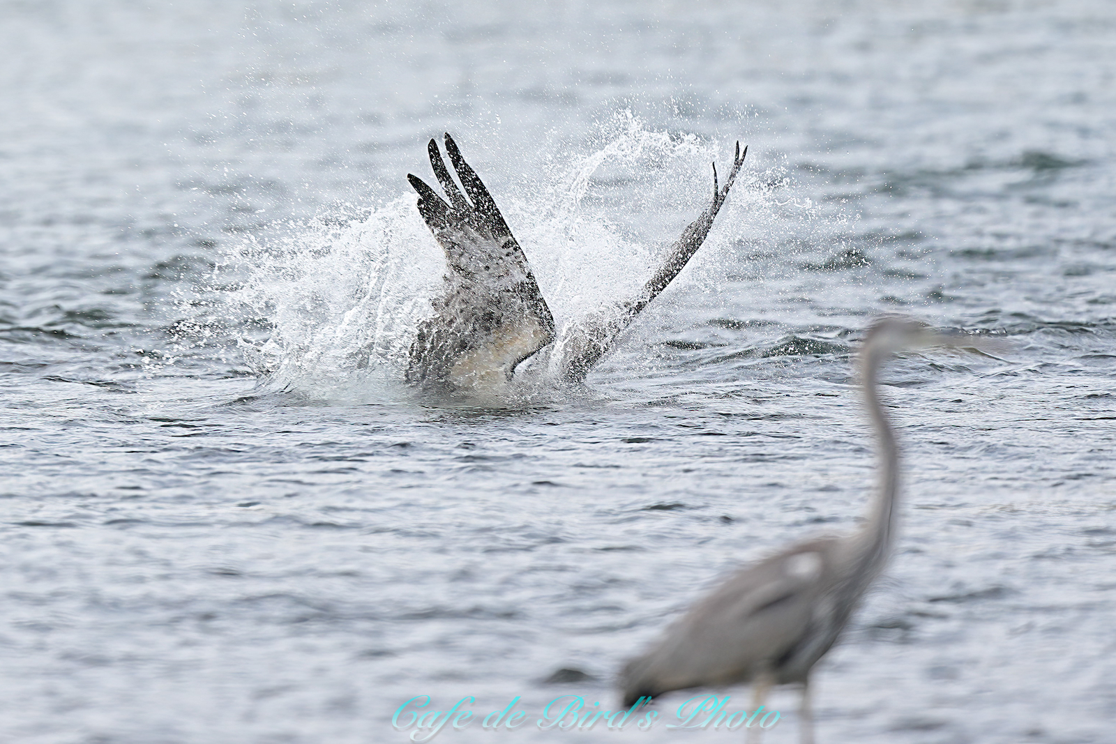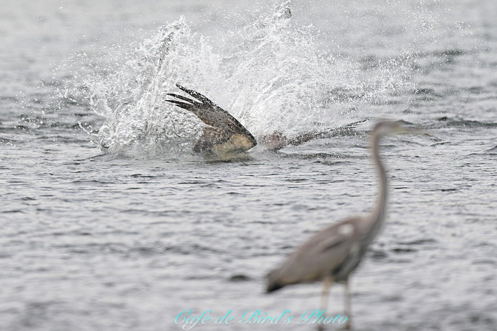 ミサゴが飛び込みましたが着水点の手前にアオサギが・・・
