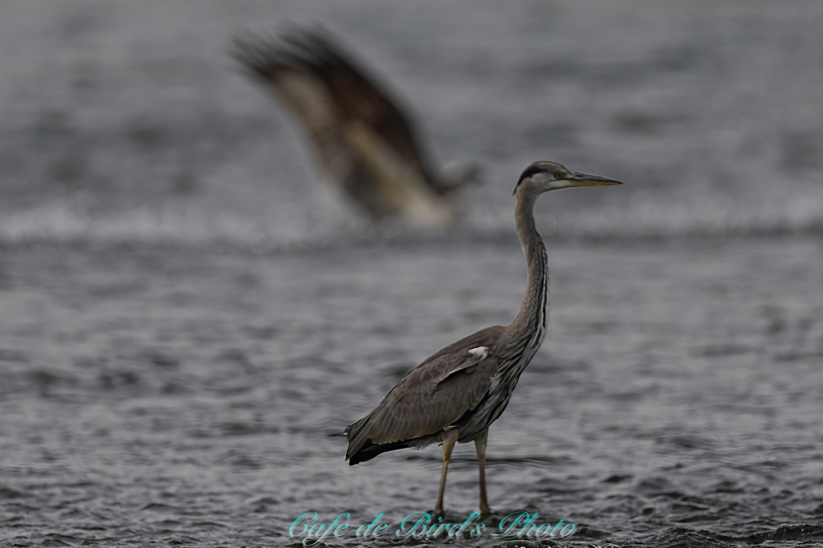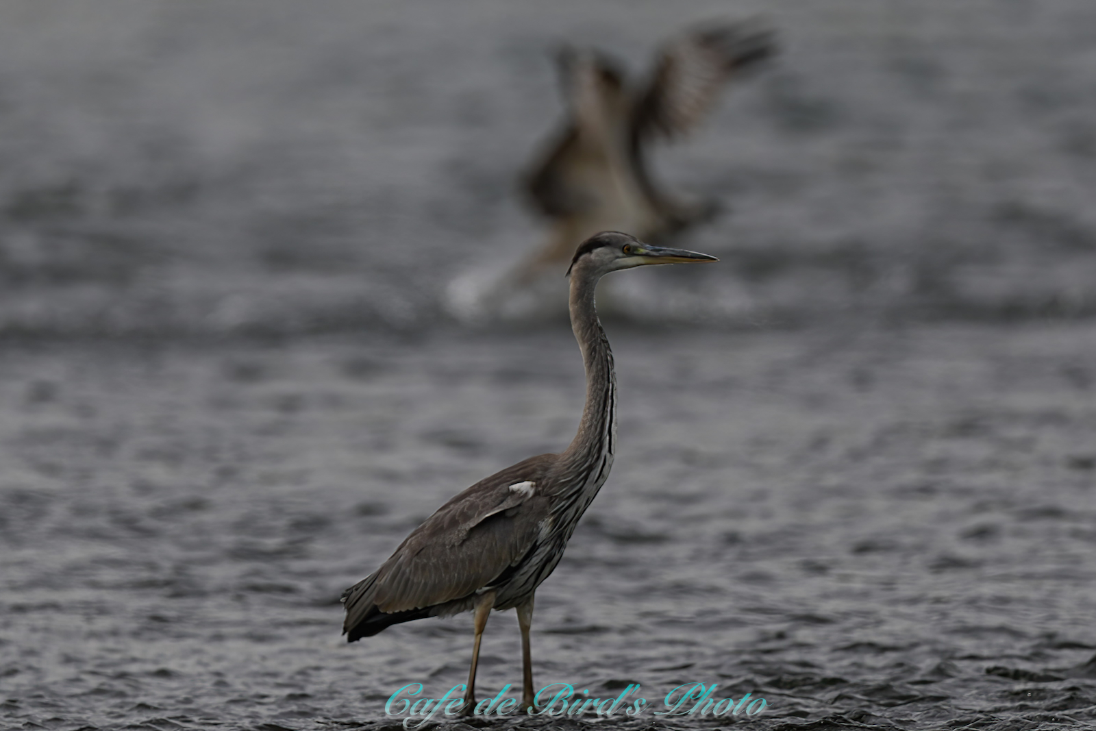 - 飛び込んだら手前にアオサギ に seagull より