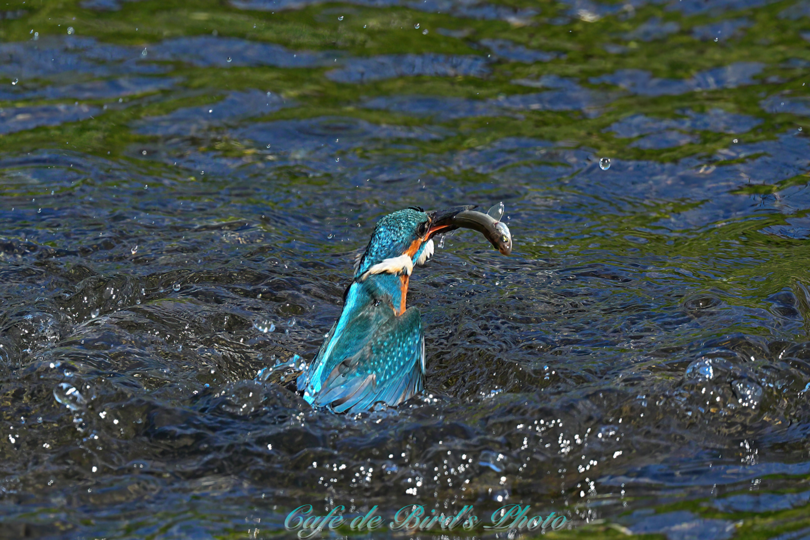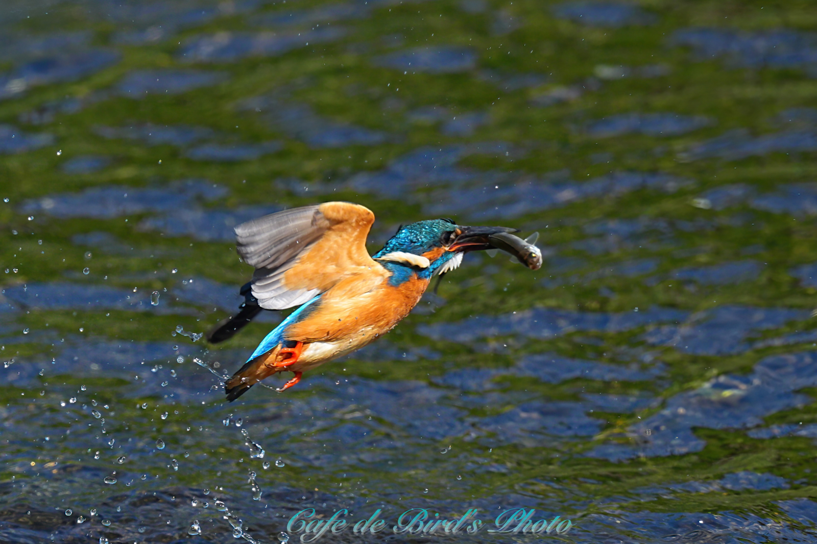 光が悪い時間にやってきて空振り2回3回目にお魚を咥えましたが