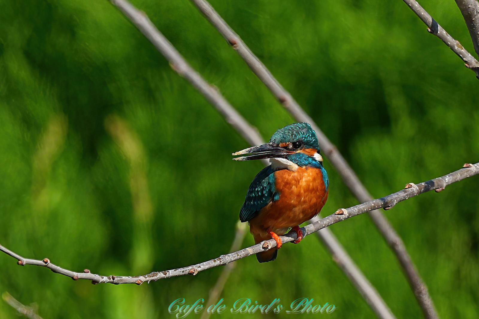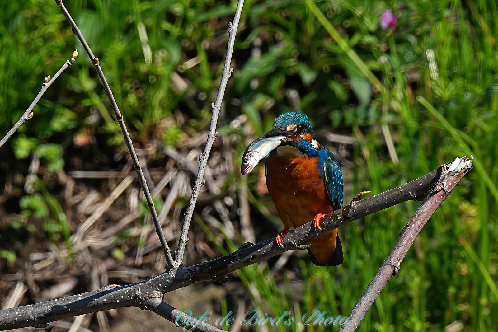 上流側の枯れ木にやってきて2回お魚咥え1匹はお持ち帰りでした
