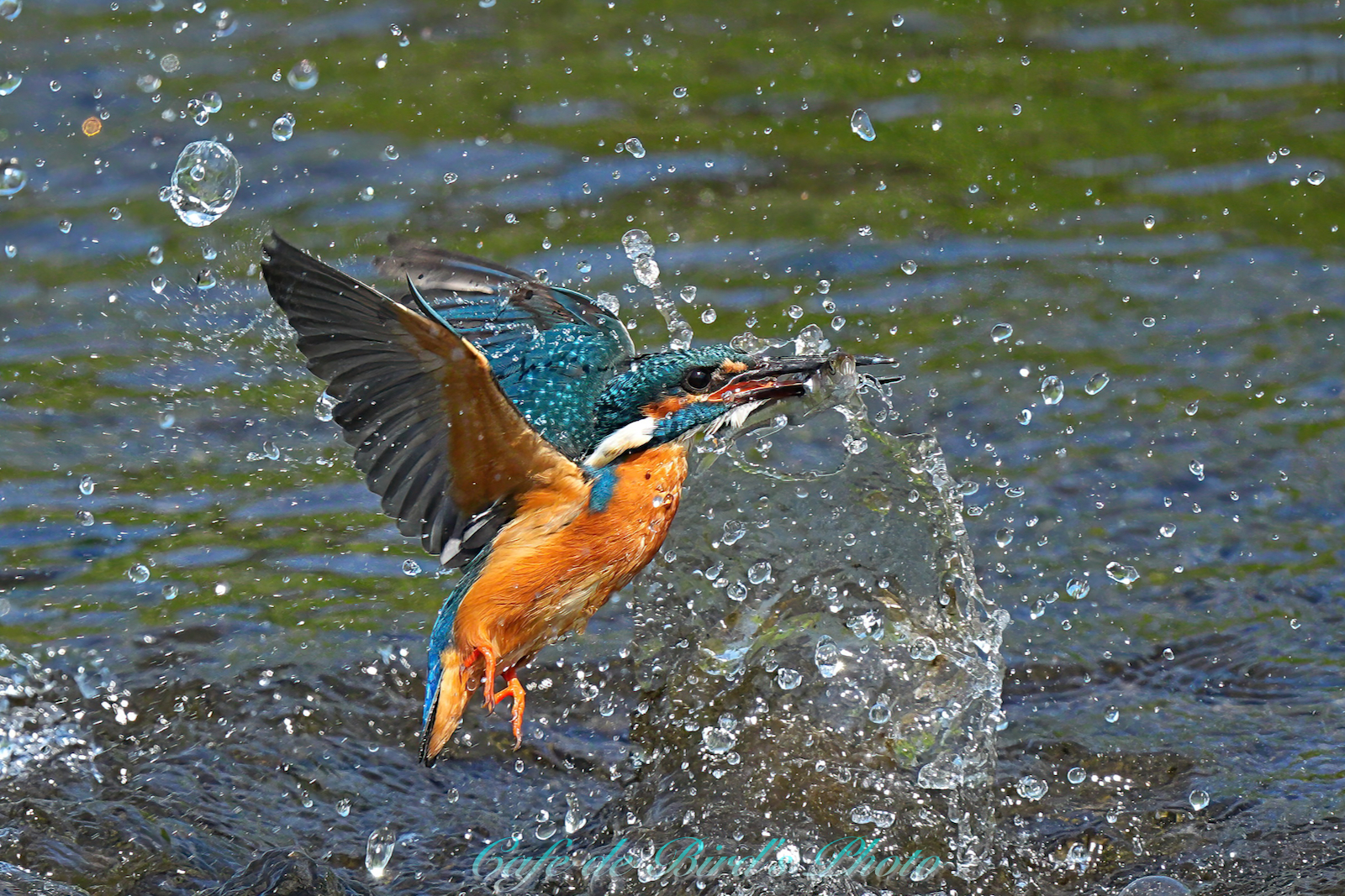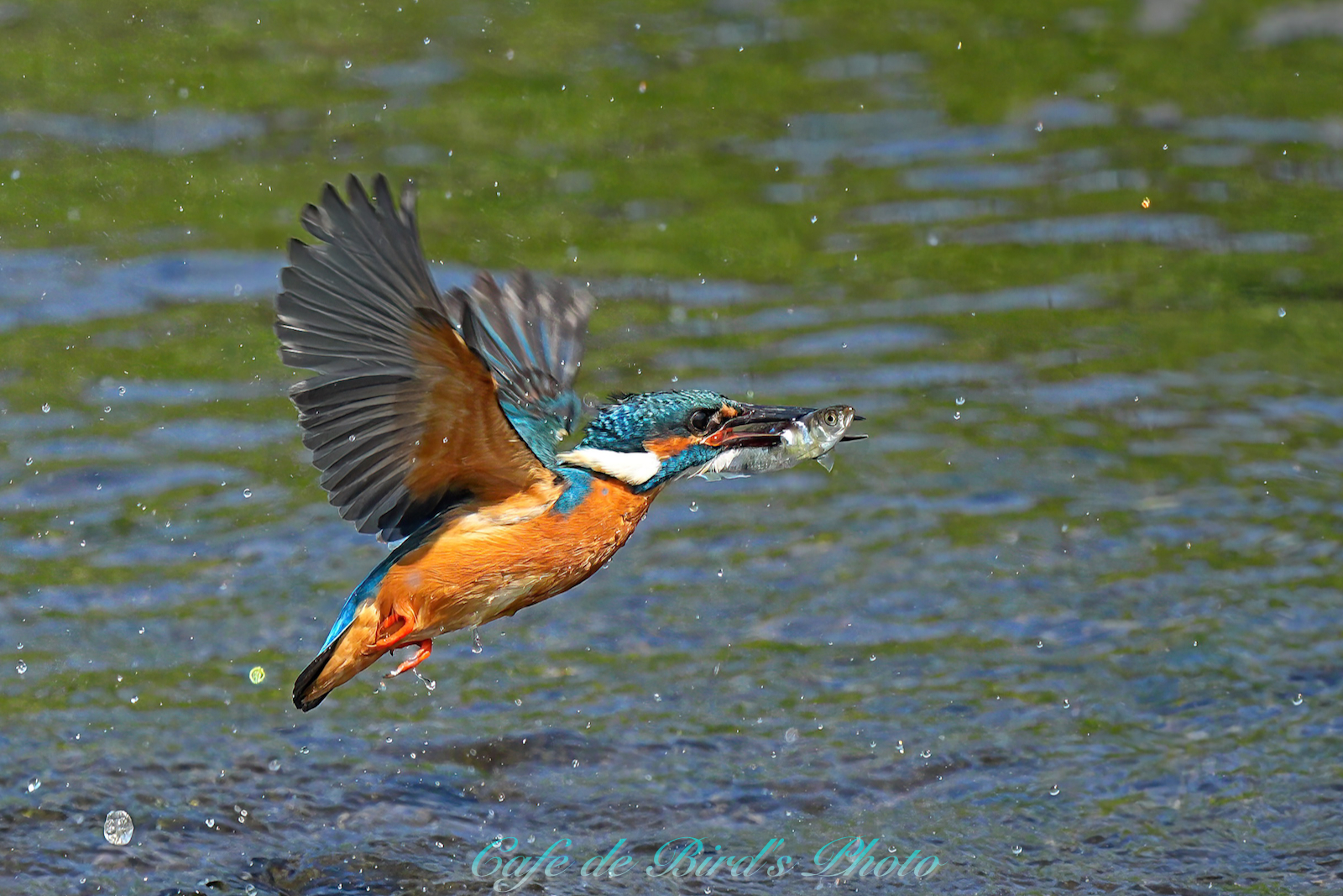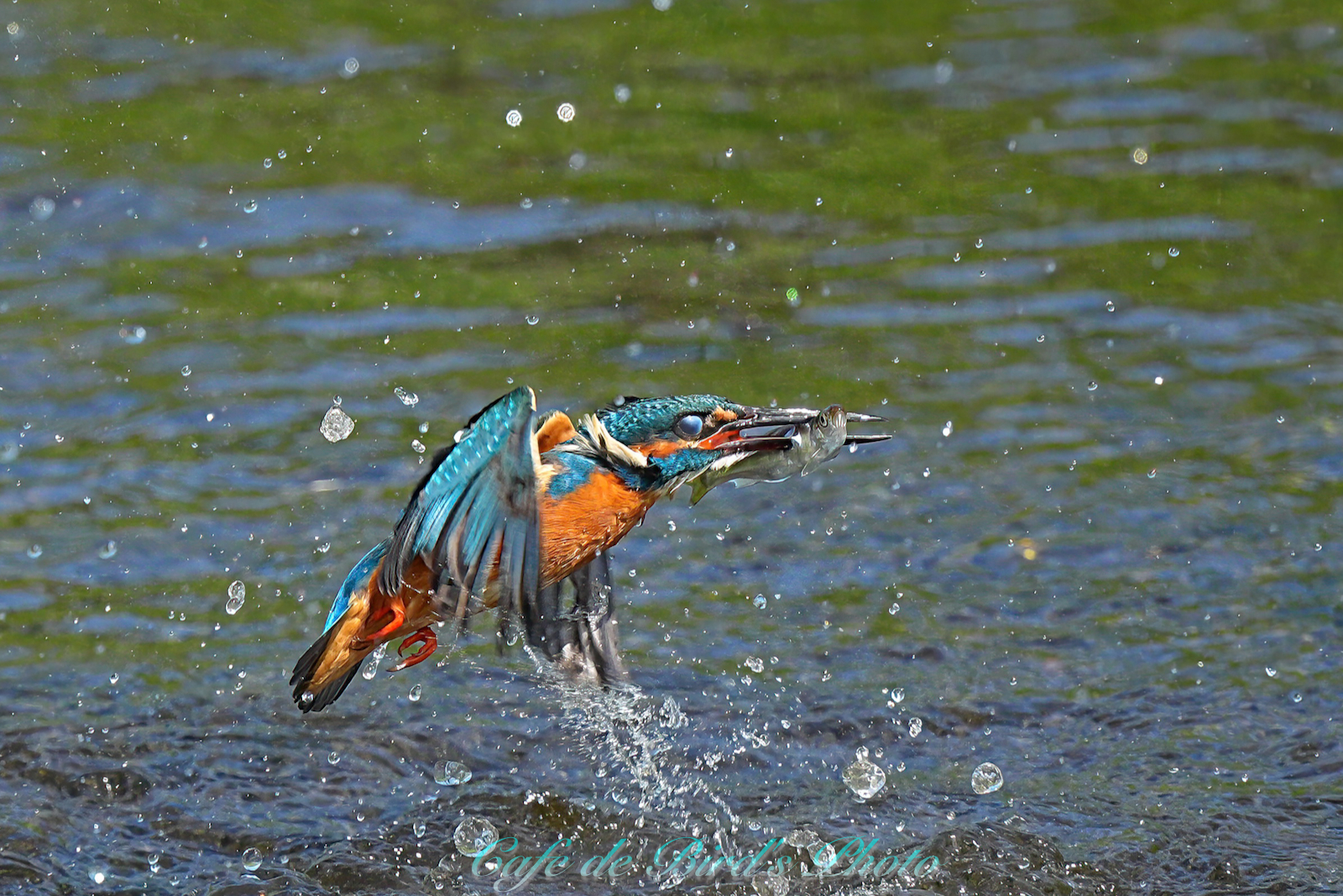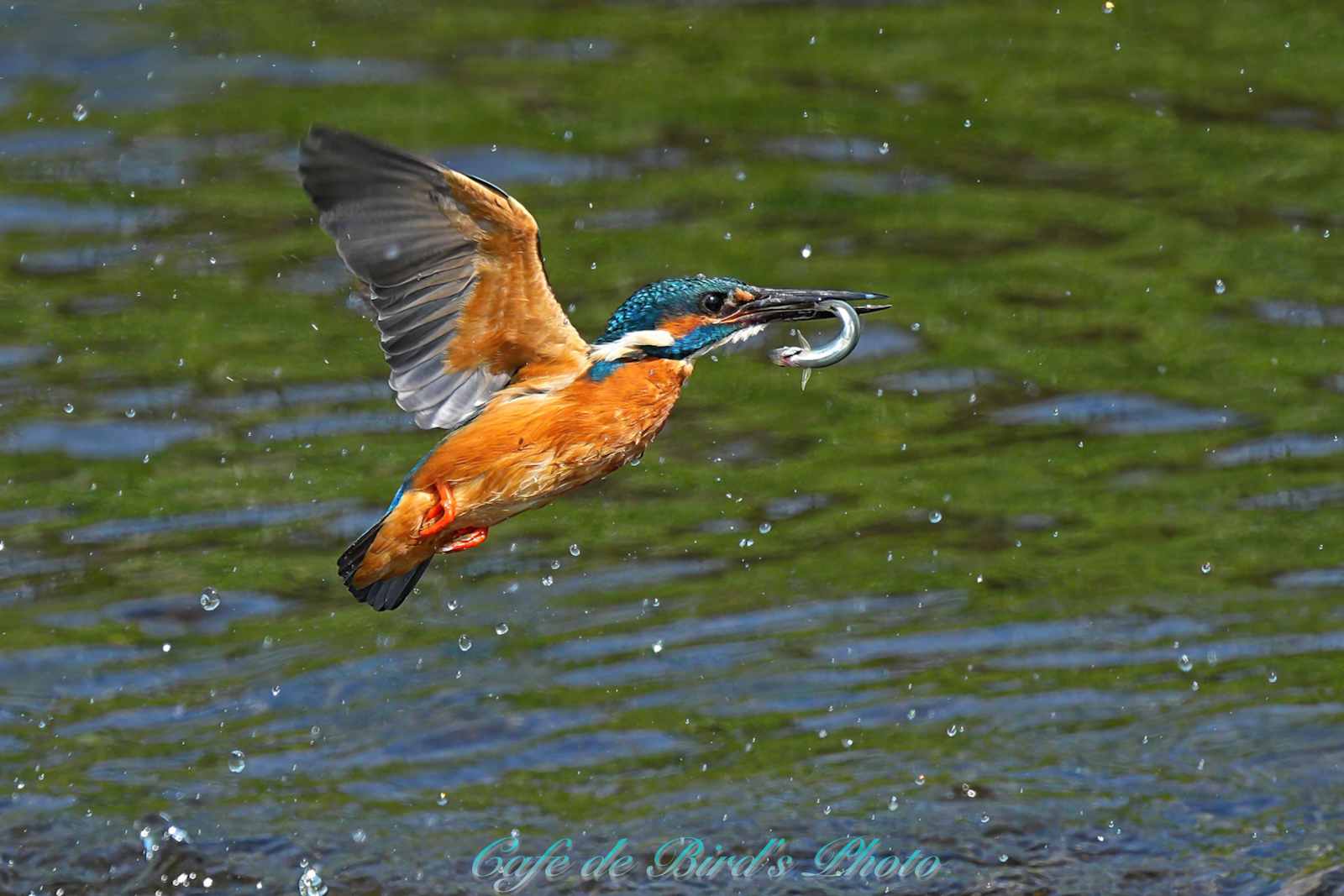 遡上してきたアユを咥えます