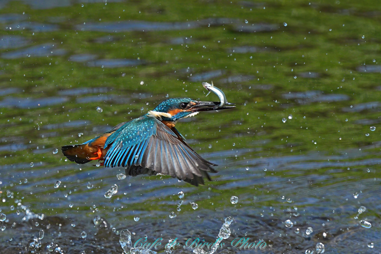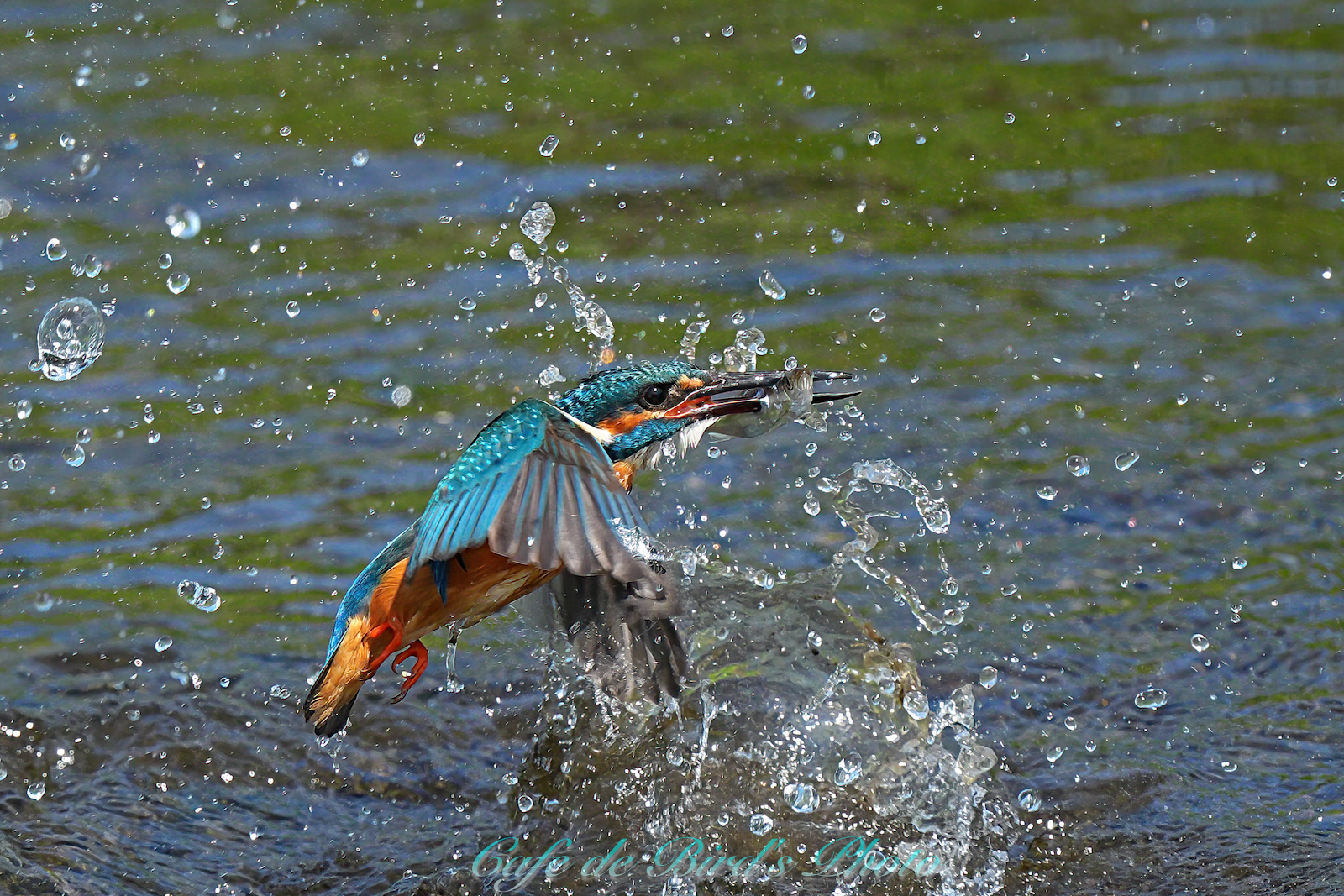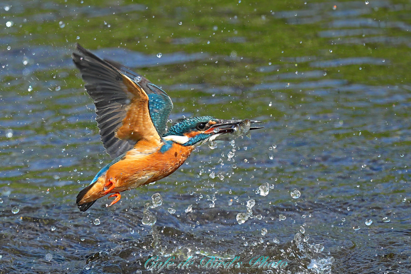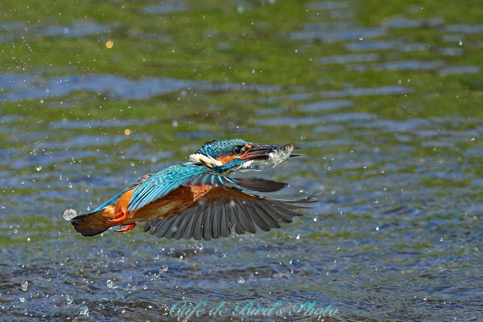 遡上してきたアユを咥えます